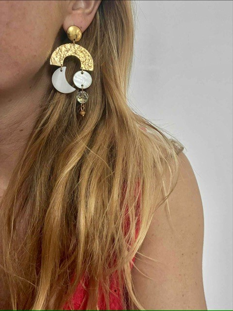- Pampille demi lune dorée - perles nacrées , recyclées