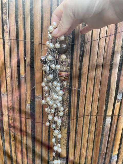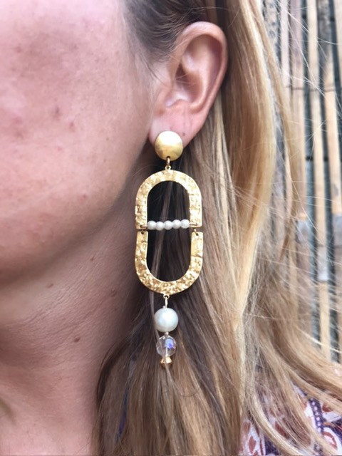 - Deux pampilles demi lune dorée - perles de verre blanches, recyclées