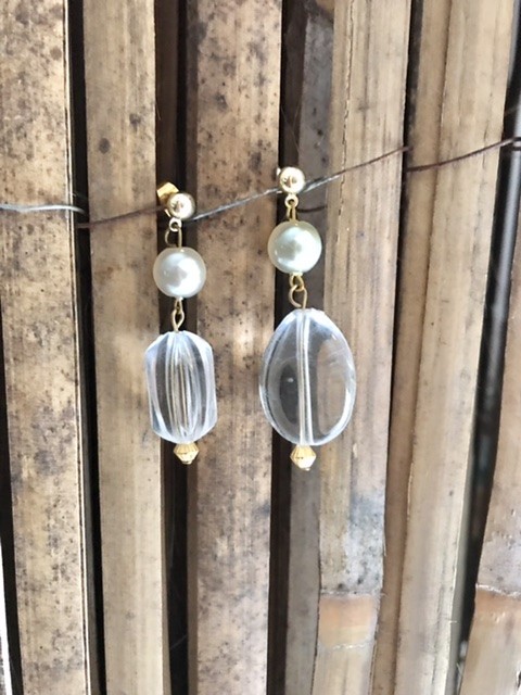 - Perles : Perles de verre nacrées et perles de cristal fantaisies, recyclées.
