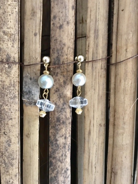 - Perles : Perles de verre nacrées et perles de cristal fantaisies, recyclées.
