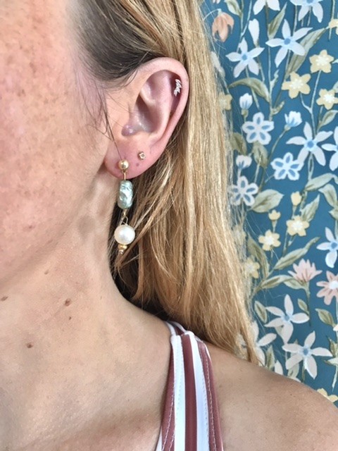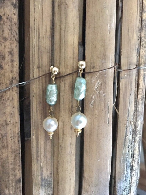 - Perles : Perles de verre nacrées et perles vert d'eau, recyclées.
