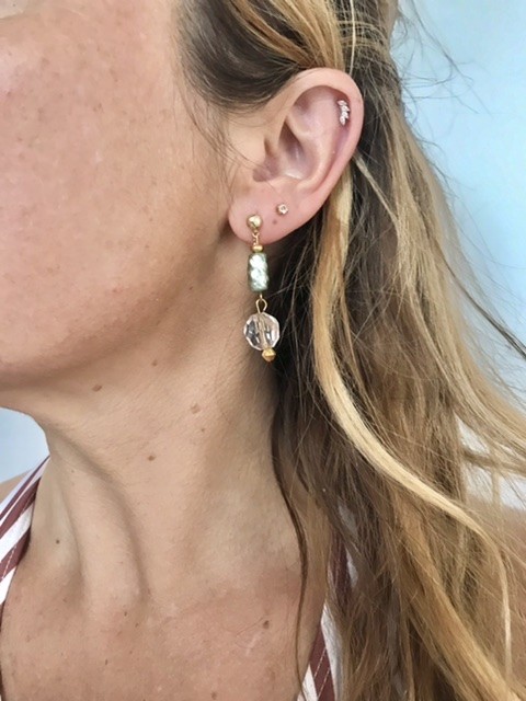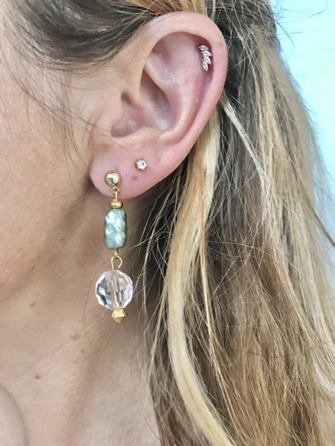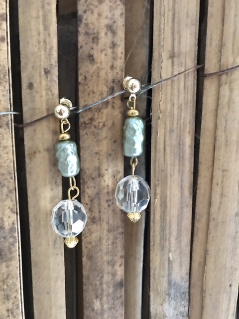 - Perles : Perles de cristal fantaisies et perles vert d'eau, recyclées.