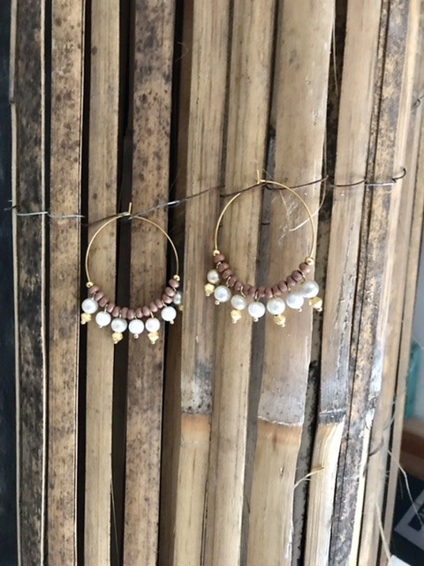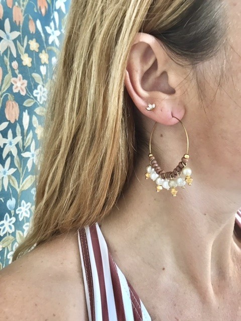 - Perles : Perles de verre nacrées et perles marron fantaisies, recyclées.