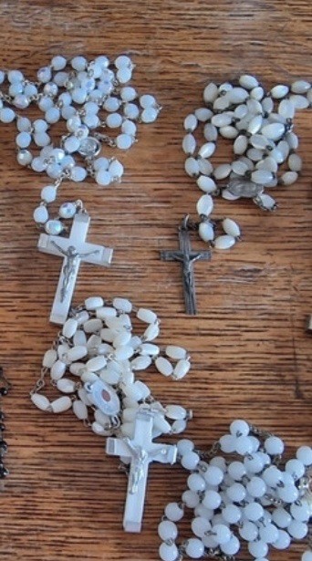 - Perles :Perles ancien chapelet et chutes de collier épis dorés , recyclées.