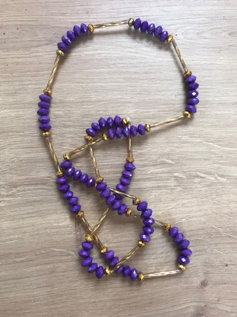 - Perles : Perles violettes et bleu ciel, recyclées.